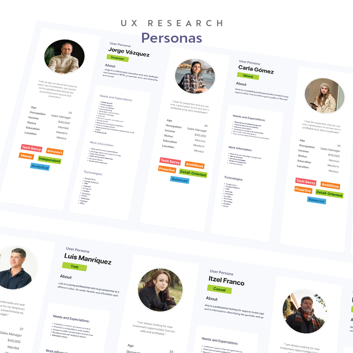 We built detailed personas based on our research to guide our design decisions.